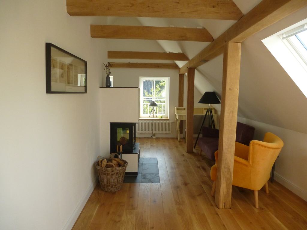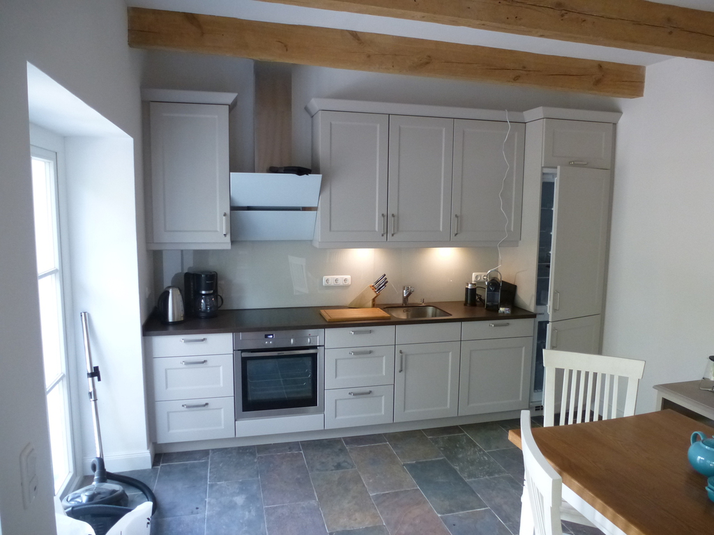 Das Witzuk hat im Erdgeschoss nach Zugang über die Terrasse eine grosse gemütliche Küche und ein kleines Gäste WC. Dann geht es über eine recht schmale steile Treppe